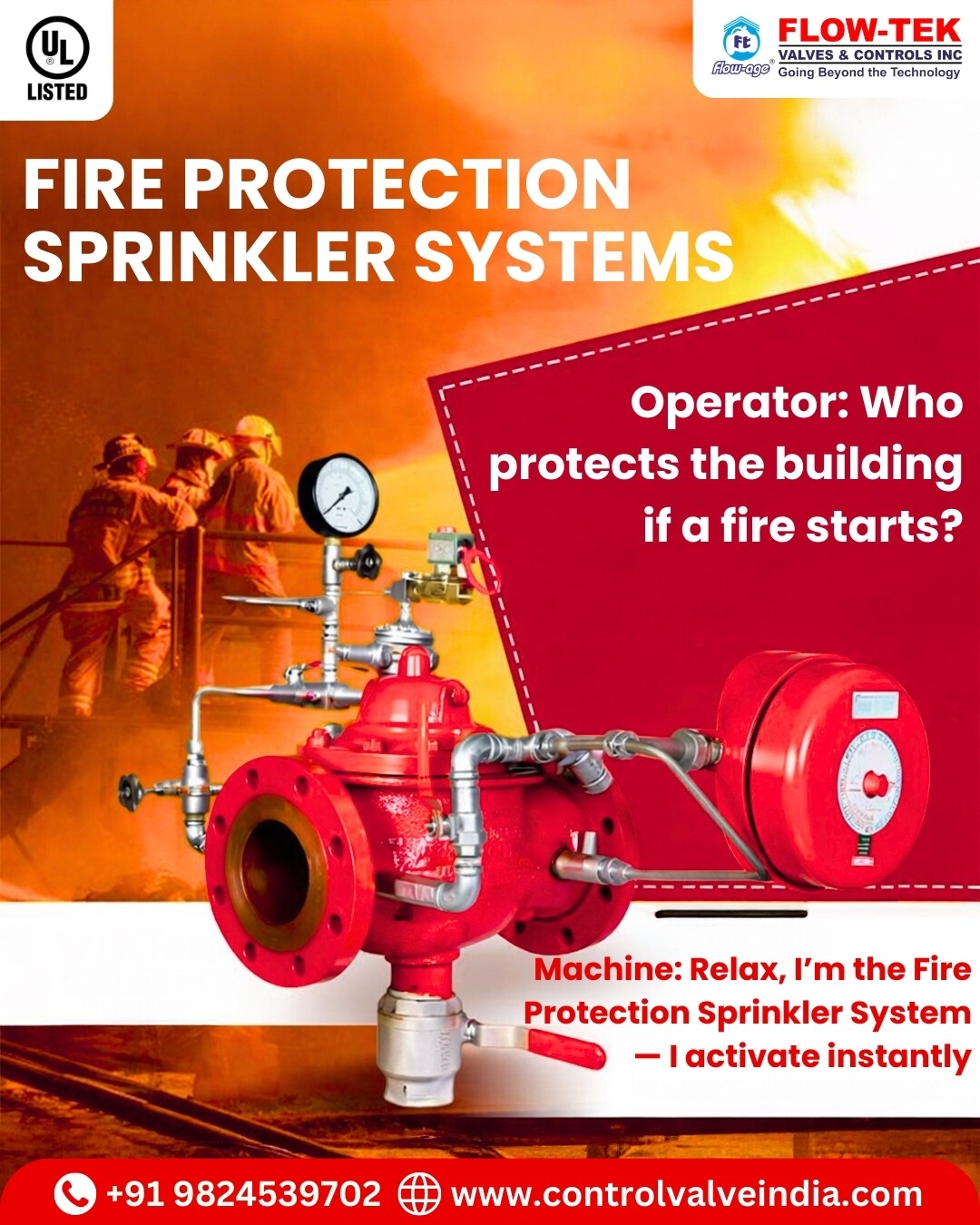 Flow-Tek Valves & Controls Inc is your trusted Fire protection sprinkler systems Supplier in India and Dealer in Gujarat, offering advanced, safe, and durable fire suppression solutions.